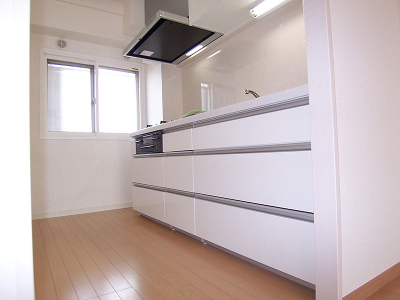 キッチンの内装をリフォームし、吊戸棚や流し台、換気扇などを入れ替えました。