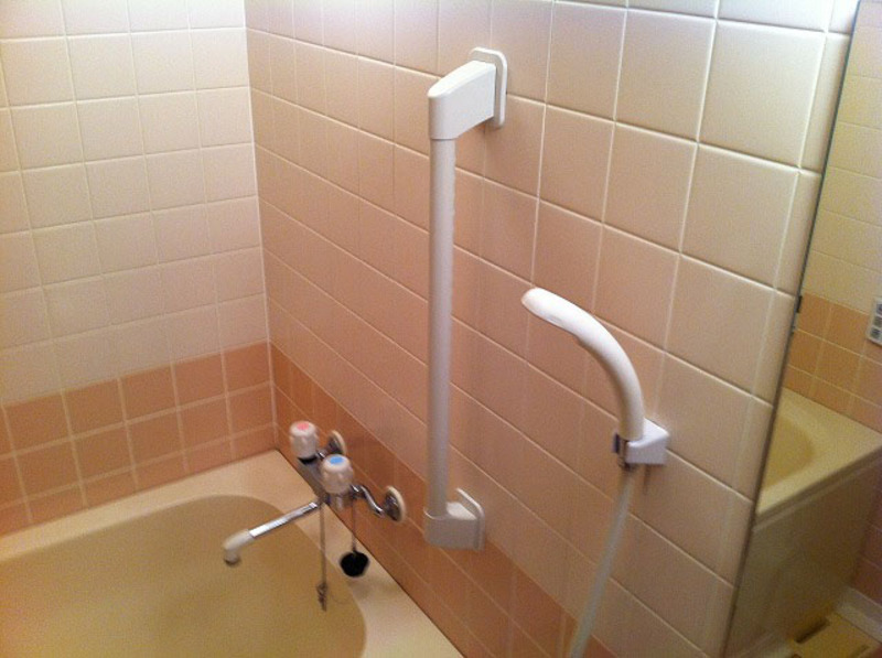 浴槽またぎ越し時の姿勢安定のために、縦手すりを取付ました。