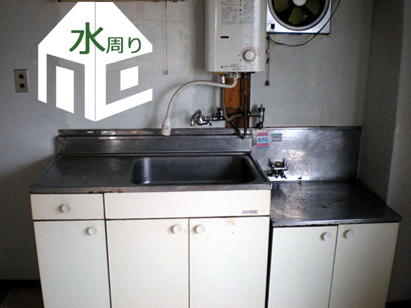 流し台を入れ替え、湯沸かし器から給湯器を利用する方法に水周りもリフォーム。