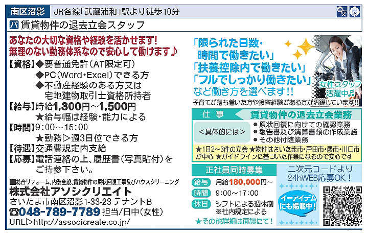 | お問い合わせ先 | 求人募集フォーム 電話:048-789-7789(担当:田中) |